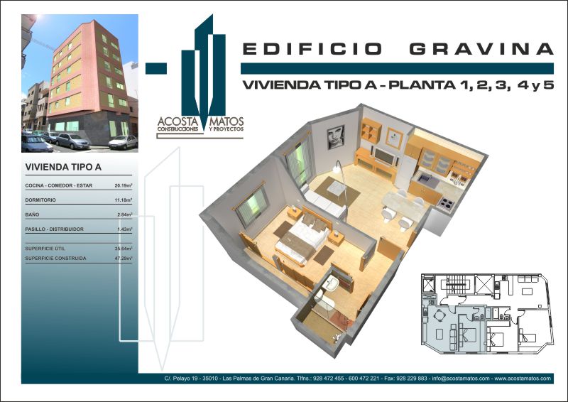 Lámina de información y venta de promoción privada de edificio de apartamentos